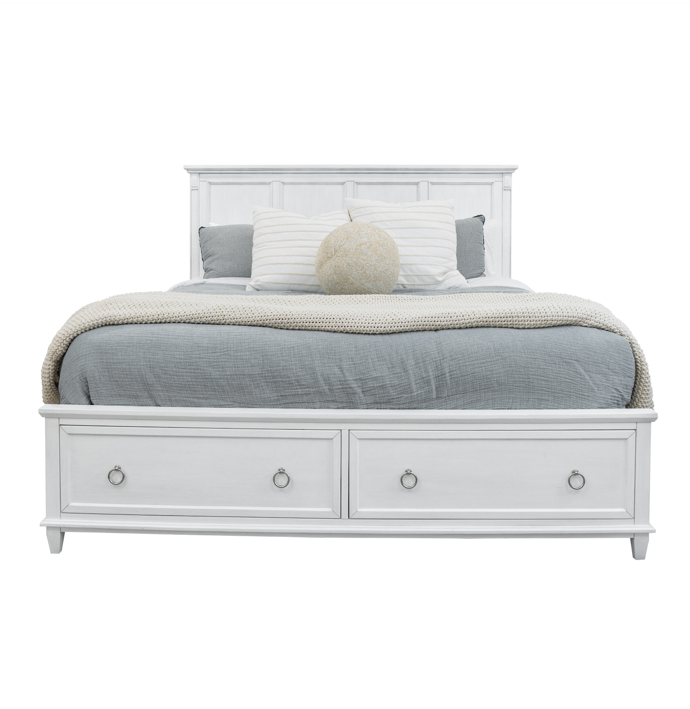 Queen (Storage) / Translucent White Finish w/ Soft Grey Glaze
