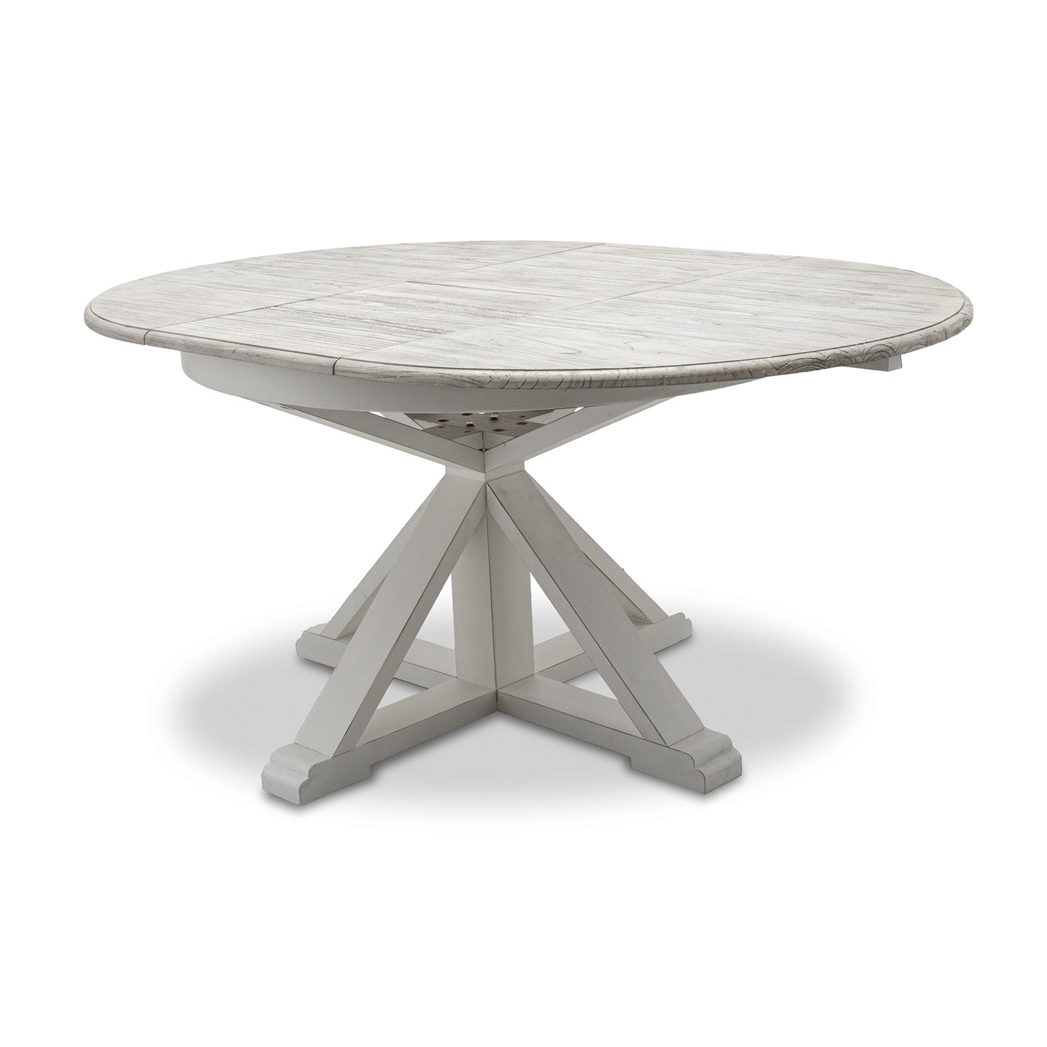 The Islamorada Dining Table is a gorgeous showstopper! Crafted of solid Mindi wood and finished with a lightly distressed wood, you'll be amazed by its unique design. The butterfly leaf extension offers added convenience, while its Taupe/Gray color pairs perfectly with any décor. Enjoy premium quality and eco-friendly finishes - the perfect addition to your dining room!