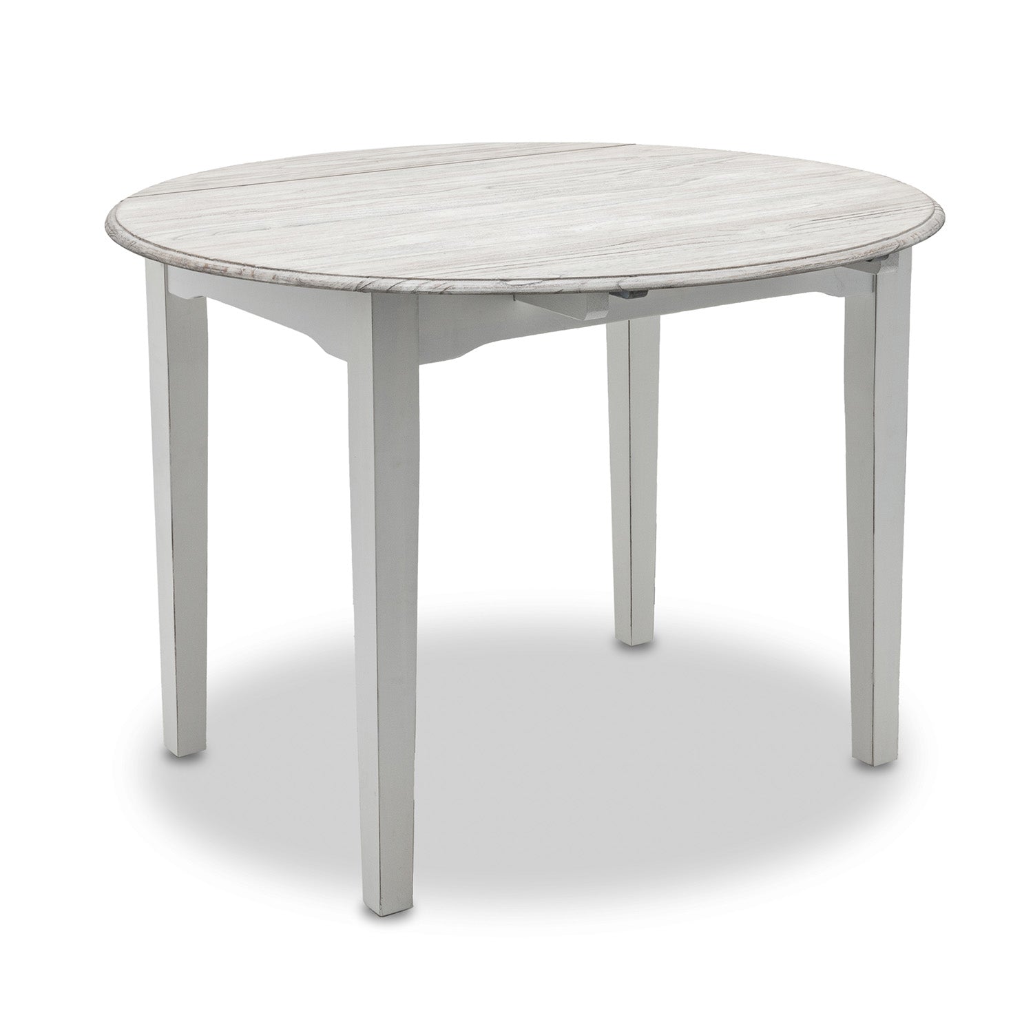 The Islamorada Round Table - Drop Leaf offers a unique design that can be paired with any décor. Crafted from solid Mindi wood with a slightly distressed wood and taupe finish, it brings a rustic touch to any room. The sides collapse to create versatility, while the water-based eco-friendly finish ensures lasting style. Create an unforgettable dining experience with this charming table!