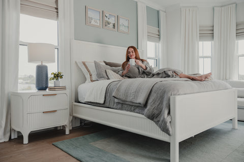 Experience the serene elegance of the Montauk Bedroom collection. Crafted in a pristine white finish, this exquisite set features a reeded design that is sure to captivate an audience. The radiused case pieces, accented with soft bronze edge pull hardware, blends modern sophistication with timeless charm. Every detail is meticulously designed, from the full-extension ball-bearing glides that ensure effortless access to your essentials, to the robust dovetail construction that promises lasting durability. The nightstand, thoughtfully equipped with pre-installed power and USB outlets, keeps your devices charged. Rounded bed posts add a touch of softness, creating a harmonious sanctuary where comfort meets style. Transform your bedroom into a haven of refined beauty and ultimate functionality with Montauk.